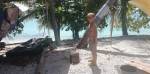 Nous voilà donc au sec pour caréner, l’idée étant de laisser un bateau propre à vendre à Raiatea dans 2 mois. Le chantier est vraiment sympa à tous points de vue. Le bateau est posé sur le terre-plein à 30 mètres du lagon où on peut aller piquer une tête dès qu’on a un peu chaud ou marre de bosser. L’équipe du chantier est super sympa (Tony, Alfred, Pauline, Nini, Tamatoa, Tahai). Un soir ils nous ont invités à diner avec 2 autres équipages et des amis à eux et on a passé une des soirées les plus sympas du voyage au son des ukulélés. Il y a une douche et des toilettes juste à côté du bateau, une cabane au bord de l’eau qui nous sert de salle à manger, du wifi, et une autre cabane bien agréable un peu plus loin où on fait l’école. Le seul inconvénient et de taille : les moustiques ! On se fait dévorer à partir du coucher du soleil. Alfred nous prête gentiment un ventilateur qui limite un peu le problème en créant un courant d’air dans le bateau. On s’asperge de répulsif avant de se coucher et on fait brûler des tortillons verts dont la fumée est sensée éloigner les moustiques. Malgré tout ça, on est quand même pas mal piqués.