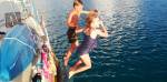 Deux minutes plus tard, au moment d’affaler la grand-voile, l’embout côté guindant d’une latte se casse et se coince dans le lazy au niveau de la deuxième barre de flèche. Me voilà obligé de grimper dans le mat hissé par Sophie à la drisse de grand-voile. Encore un souci de réglé, on va pouvoir rentrer.
