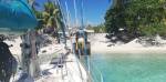 2 jours au village pour refaire de l’avitaillement, pendre un bon déjeuner au Rotoava Grill (le meilleur poisson cru que j’aie mangé) et nous voilà repartis pour Hirifa au Sud du lagon (28 milles) avant que le vent ne repasse trop Sud. On sera très bien là-bas pour laisser le coup de vent prévu en début de semaine prochaine. Et puis l’endroit est super pour le kite qu’on n’a pas eu l’occasion de pratiquer depuis février aux Gambier. Le seul problème à gérer reste l’arrivée de Marie lundi. Heureusement, la pension Raimiti à un mille de notre mouillage doit justement récupérer à l’aéroport des clients qui arrivent par le même avion. Il leur reste juste une place dans le bateau. Pauvre Marie qui se sera déjà tapé 22 heures d’avion avec 3 vols et 2 escales, elle va devoir enchainer sur 1h30 de speed boat. Bon elle a 3 semaines pour récupérer dans le décor le plus reposant qu’on puisse imaginer.