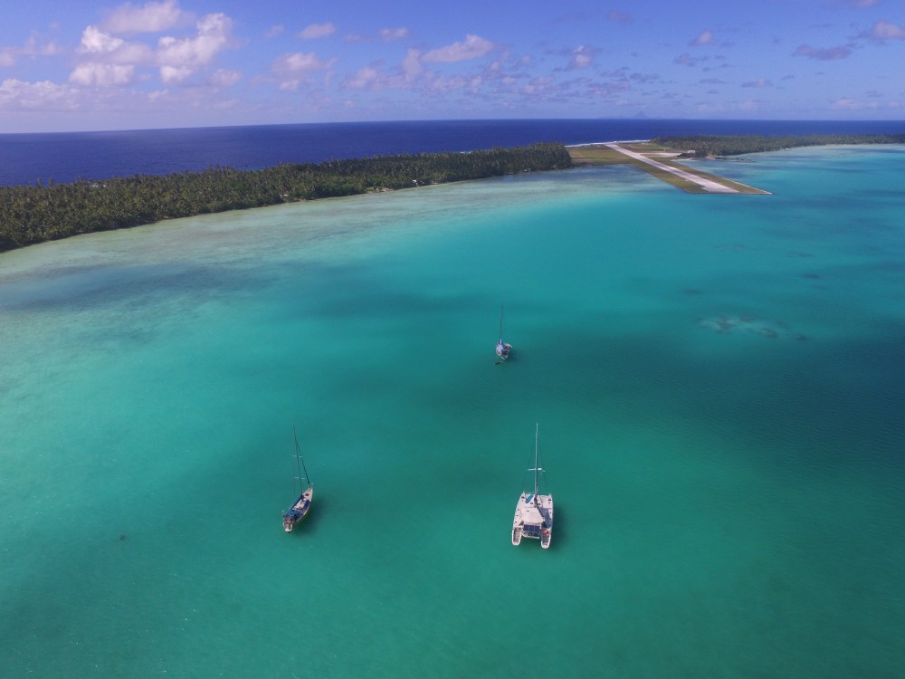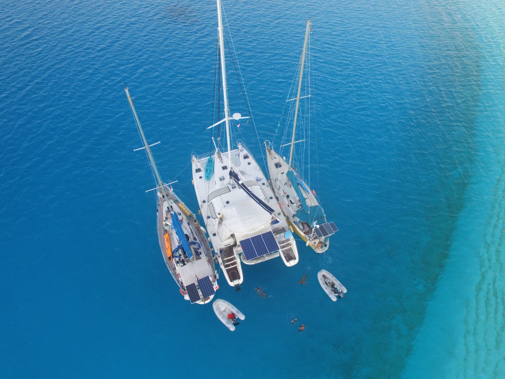 Après cette promenade de santé nous avons rejoint notre premier mouillage, le plus joli, près de la passe. Et puis, pour fêter notre dernier soir tous ensemble, on a décidé de passer la soirée et la nuit, nos 3 bateaux à couple !!!!;;;;;; C’EST UN FAMEUX 3 MATS ;;;;; mais… pas tellement fin comme un oiseau avec ses 4 coques…..