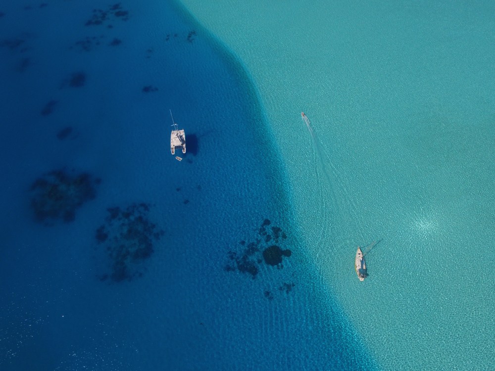 Nous avons mouillé dans un bleu très très clair par 1,60 m de fond !! La classe ! on avait pied en bas de notre échelle de bain ! pas mal !