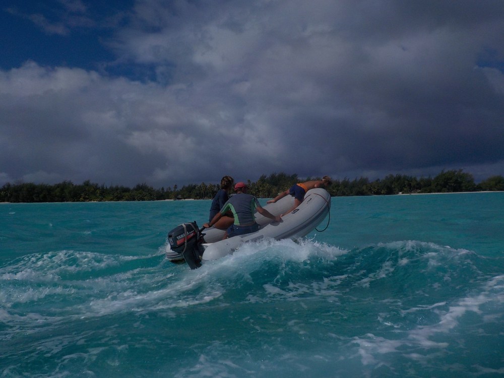 On pense, quant à nous, que le prétexte est un peu bidon et qu’il y avait surtout un business à monter..) Les plaisanciers, et on en a croisé quelques-uns durant ce voyage, sont, eux, hyper respectueux de l’environnement (d’autant plus qu’ils n’ont absolument pas envie de poser leur ancre sur les patates de corail et de galérer une heure pour la relever….). De plus, le corail souffre sûrement plus des passages incessants des jet skis et des speed boats des gros hotels que de nos déplacements tout cool en annexes… Je vous épargne les détails, mais je doute aussi que le nourrissage de requins et de raies obèses, dans 80cm d’eau, pour impressionner les américains, soit génial pour l’harmonie de la faune du lagon…. ; va savoir…. Bref, le pauvre Francis n’a pas un boulot facile….