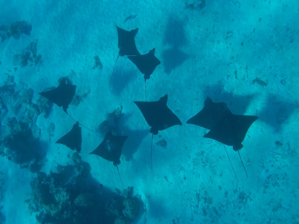 Avant de laisser Les 6 Gone quitter définitivement la Polynésie Française et mettre le cap beaucoup plus à l’ouest pour Nieue et d’autres îles lointaines (on les envie quand même), nous avons fait un joli snorkling tous ensemble, marqué par un superbe vol de raies léopards !!