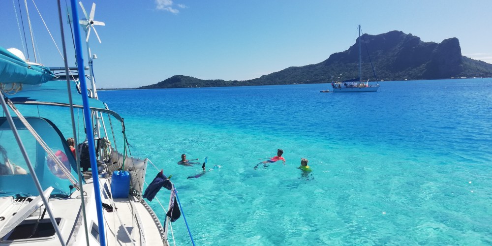Bora est aussi le seul endroit de Polynésie où le mouillage est PAYANT… ça fait bizarre quand Francis de Bora Bora moorings vient vous expliquer, tout sourire les conditions et les tarifs de la prise de corps mort…. (en échange, parce qu’il est quand même super sympa Francis, il vous prend vos poubelles !)