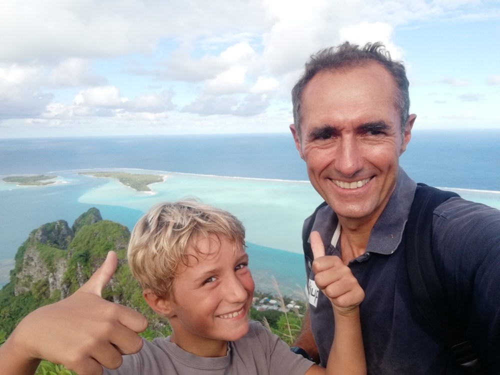 Nous sommes tous arrivés presque au sommet !!! La vue était dingue ! On voyait même Bora, Tahaa et Raiatea !